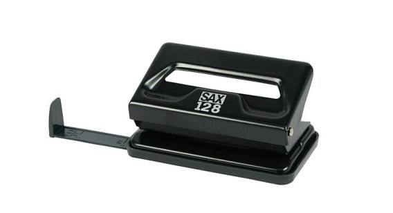 Metalowy mechanizm, plastikowa obudowa z wytrzymałego plastiku_zdolność dziurkowania: do 12 kartek_ogranicznik formatu: A4/A5/A6/888_2 dziurki_średnica dziurki: 5,5mm_odstęp pomiędzy dziurkami: 80mm_10 lat gwarancji_kolor czarny