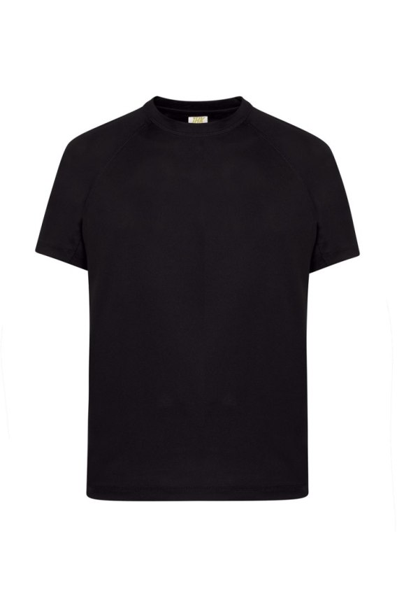 T-shirt sportowy. Krój reglan ze szwem dekoracyjnym w połowie rękawa. Oddychający materiał szybkoschnący. 100% poliester teksturowany.