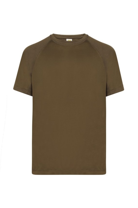T-shirt sportowy. Krój reglan ze szwem dekoracyjnym w połowie rękawa. Oddychający materiał szybkoschnący. 100% poliester teksturowany.