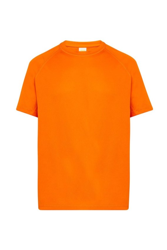 T-shirt sportowy. Krój reglan ze szwem dekoracyjnym w połowie rękawa. Oddychający materiał szybkoschnący. 100% poliester teksturowany.