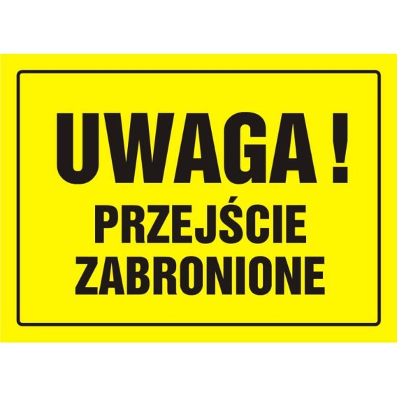 TABLICA BUDOWLANA - UWAGA! PRZEJŚCIE ZABRONIONE - OA 011 DY PN - Rozmiar 24 x 33 cm, płyta sztywna PCV - 1 mm. Znak nieświecący.