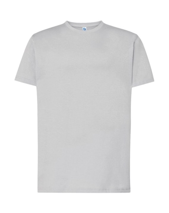 T-shirt męski z krótkim rękawem. Brak bocznych szwów. Podwójne szwy na ramionach. Wzmocniony lycrą ściągacz. Taśma wzmacniająca. 100% bawełna stabilizowana.