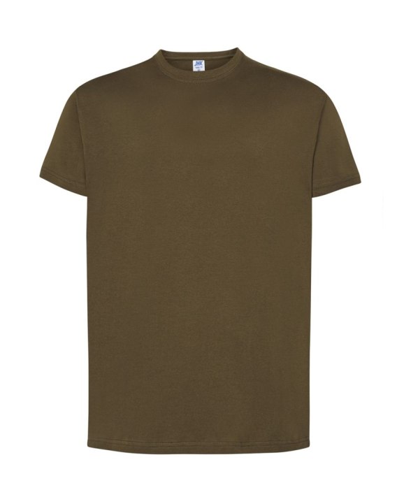 T-shirt męski z krótkim rękawem. Brak bocznych szwów. Podwójne szwy na ramionach. Wzmocniony lycrą ściągacz. Taśma wzmacniająca. 100% bawełna stabilizowana.