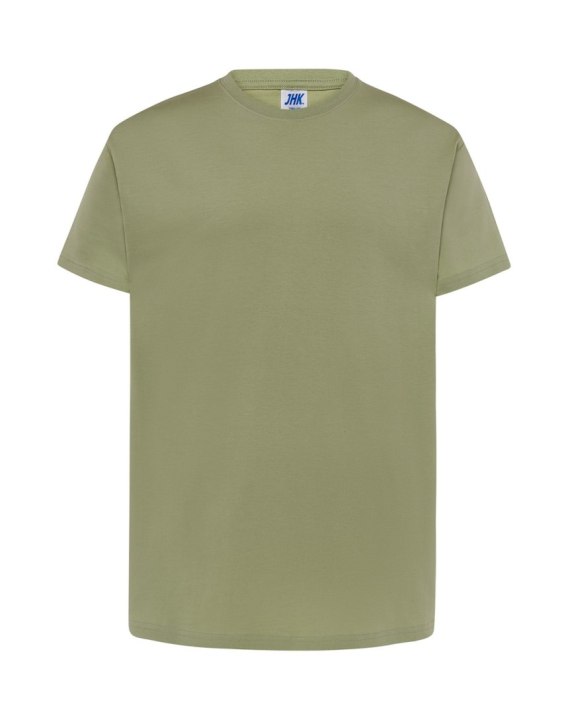 T-shirt męski z krótkim rękawem. Brak bocznych szwów. Podwójne szwy na ramionach. Wzmocniony lycrą ściągacz. Taśma wzmacniająca. 100% bawełna stabilizowana.