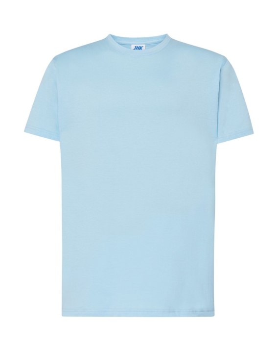 T-shirt męski z krótkim rękawem. Brak bocznych szwów. Podwójne szwy na ramionach. Wzmocniony lycrą ściągacz. Taśma wzmacniająca. 100% bawełna stabilizowana.
