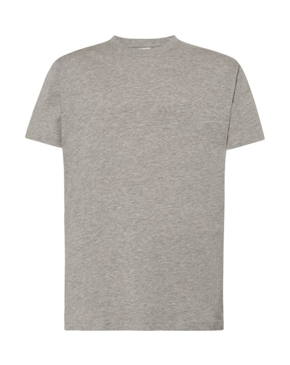 T-shirt męski z krótkim rękawem. Dopasowany do ciała. Wzmocniony lycrą ściągacz. Taśma wzmacniająca. 100% bawełna czesankowa.