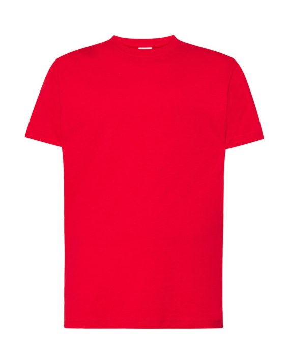 T-shirt męski z krótkim rękawem. Dopasowany do ciała. Wzmocniony lycrą ściągacz. Taśma wzmacniająca. 100% bawełna czesankowa.