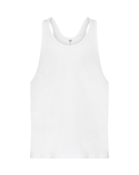Sportowo-plażowy t-shirt bez rękawków. Wycięcie na plecach w stylu bokserskim. Model unisex. 100% bawełna.