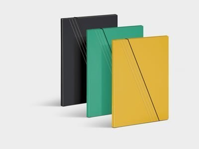 _wykonana z tektury _o gramaturze 700 g/m2__format A4__szerokość do 20mm__jednostronnie barwiona, powlekana folią polipropylenową__gumka w kolorze czarnym