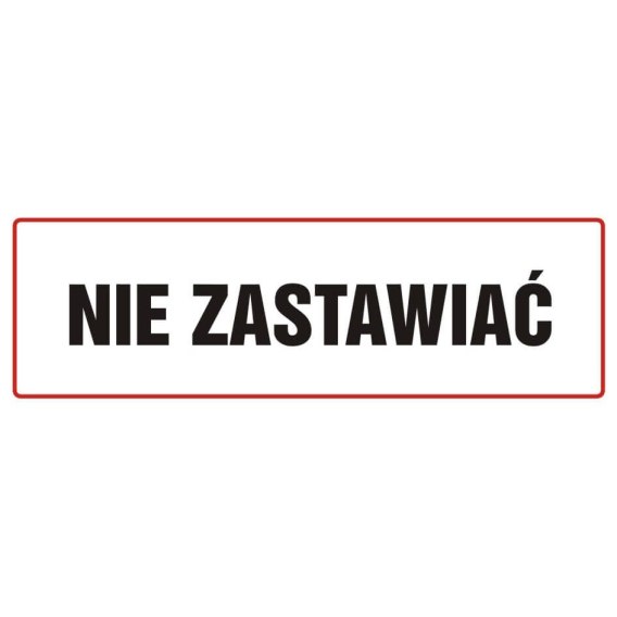 ZNAK - NIE ZASTAWIAĆ - ND005 BH PN. Rozmiar: 10 X 30 - płyta sztywna PCV - 1 mm. Znak nieświecący.