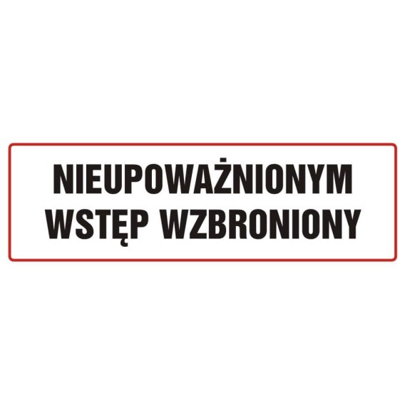 ZNAK - NIEUPOWAŻNIONYM WSTĘP WZBRONIONY - ND002 BH PN Rozmiar: 10 X 30 - płyta sztywna PCV - 1 mm. Znak nieświecący.