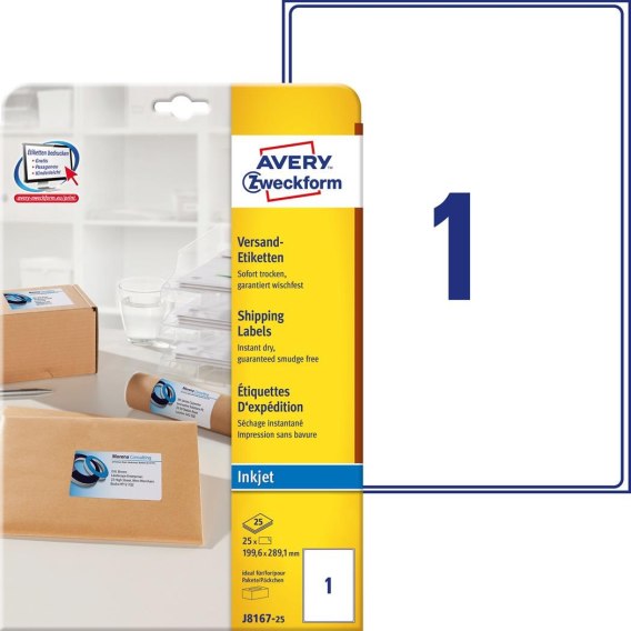 Etykiety AVERY ZWECKFORM wysyłkowe białe A4, 25 ark./op., 199,6 x 289,1 mm, białe |